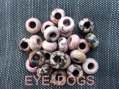 Rhodoniet is een mooie roze edelsteen met zwarte aders. In de edelsteentherapie staat de Rhodoniet bekend als EHBO steen, te gebruiken bij een shock na een ongeluk, als spierversterker en krachtige wondgenezer. Rhodoniet versterkt het hart, de bloedsomloop, het immuunsysteem en helpt de hond meer in balans te komen. Verder wordt Rhodoniet ingezet bij allergiën die slijmvorming geven zoals hooikoorts en huisstofmijtallergie.